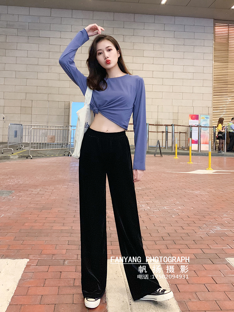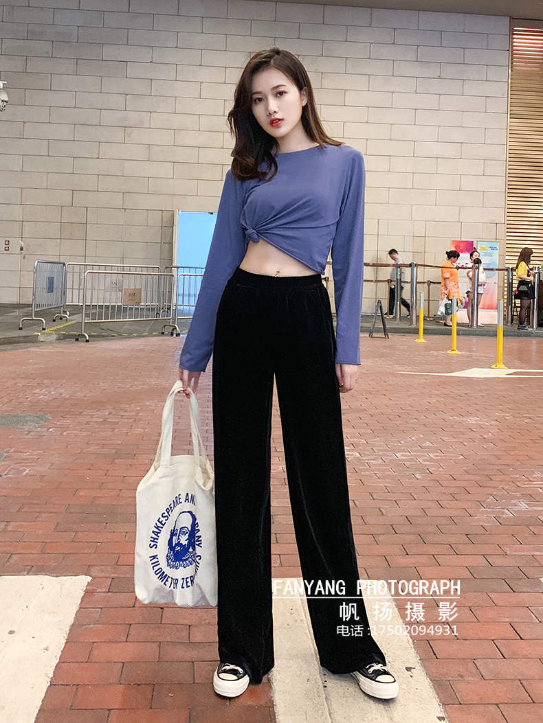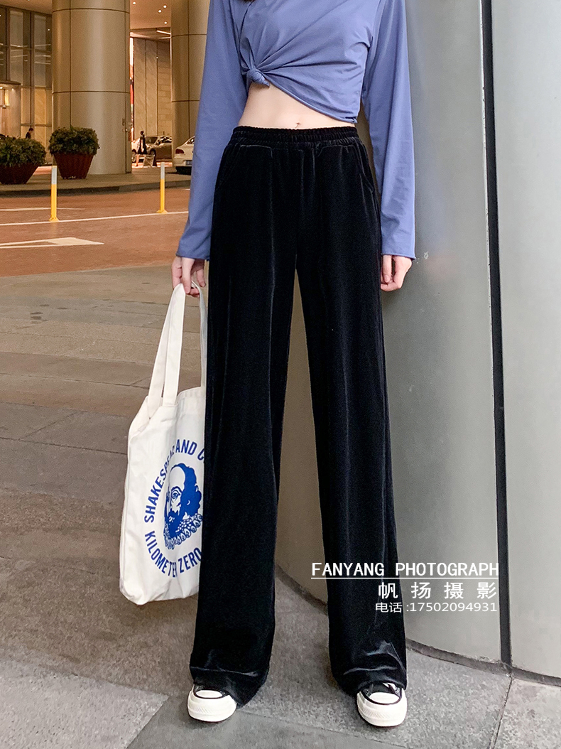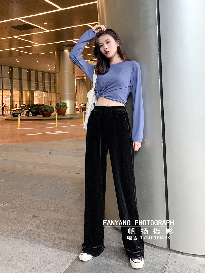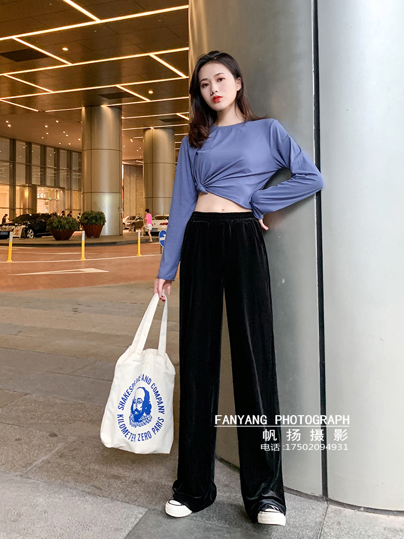 爆款金丝绒阔腿裤牛仔拖地裤短裤拍摄