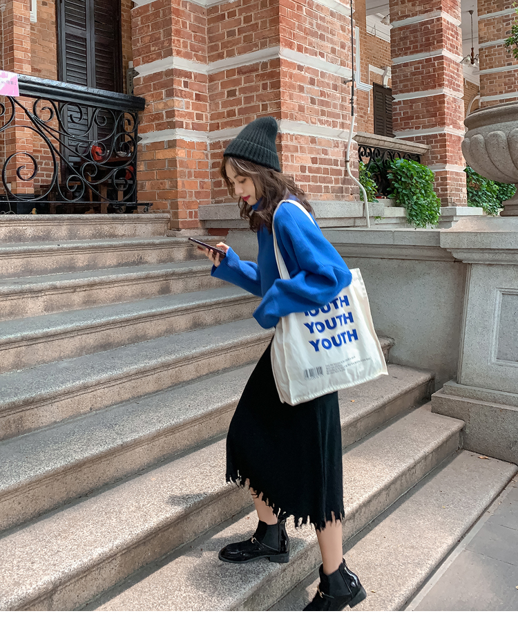 网红风店主风街拍小清新学院风毛衣针织衫针织外套针织连衣裙高领毛衣开衫毛衣拍摄模特拍照